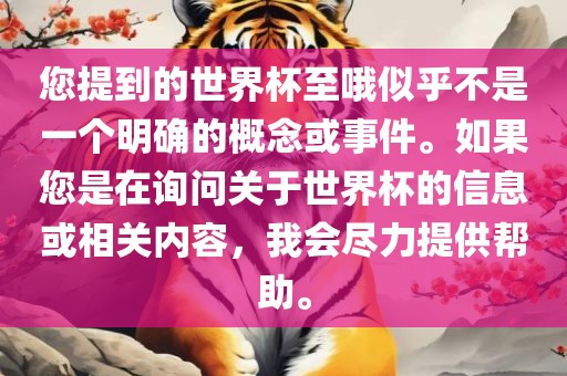 您提到的世界杯至哦似乎不是一个明确的概念或事件。如果您是在询问关于世界杯的信息或相关内容,我会尽力提供帮助。